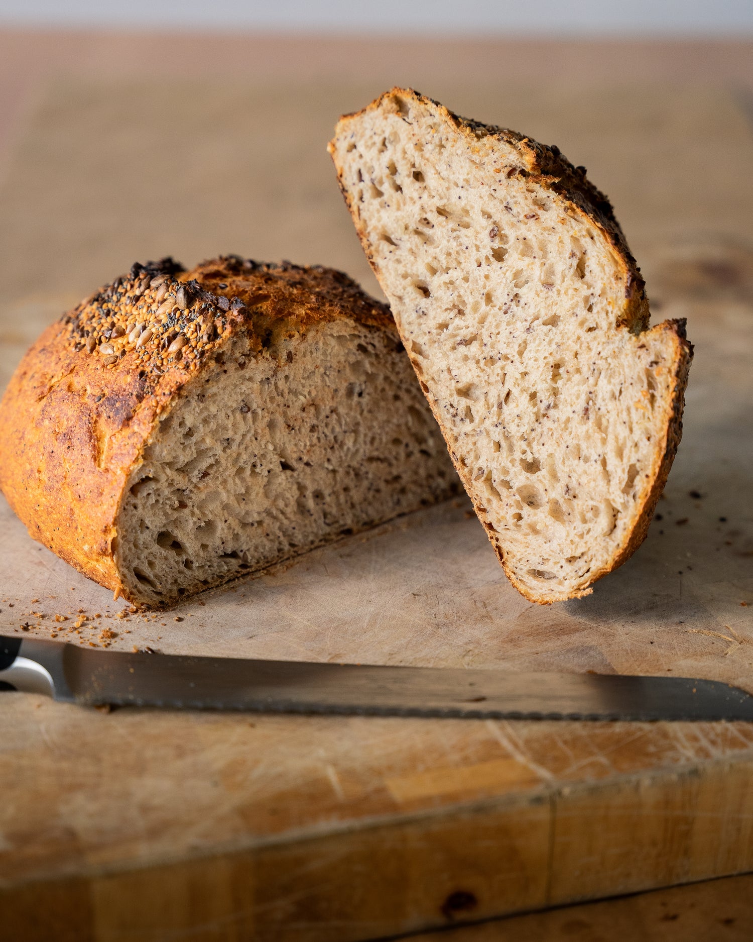 With an assortment of 4 different types of seeds, this multi-grain spelt bread, baked in a traditional bread oven, offers some surprisingly nutritious values.